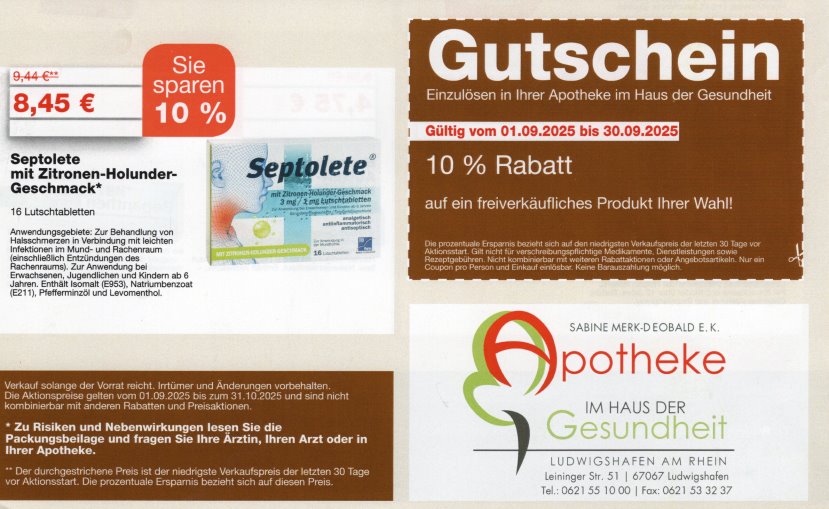 Ihr Apothekenteam © 2025 Apotheke im Haus der Gesundheit Angebot solange der Vorrat reicht. Irrtümer vorbehalten.